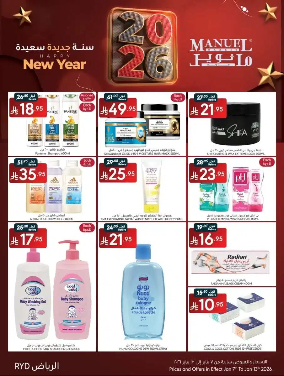 تحتوي عروض مانويل الرياض اليوم علي : زيت زيتون الوزير – تونة فريجينتو – مخلل طرشي مشري – أرز السفير مزة – عسل المراعي طبيعي – منظف لترو – مربى تين وفراولة – جبنة الطيب قليلة الملح – زيت زيتون الجميل – مسحوق غسيل بريدوكس – حمص بالطحينة – حليب مجفف كامل الدسم – عسل بيدر صافي – سلطة جبنة قطع خضار – زيت زيتون بيتوتي