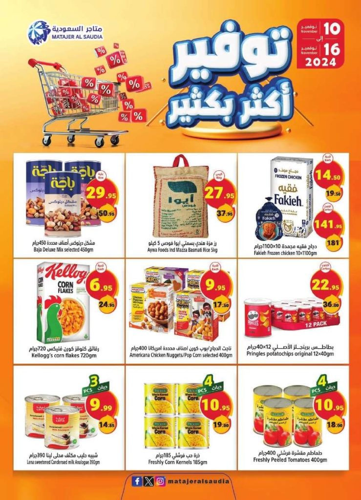 تتنوع عروض متاجر السعودية لتشمل أيضا تشكيلة واسعة من المكسرات والحليب المعلب والذرة بالإضافة إلى المعلبات مثل الطماطم المقشرة التي تعتبر أساسية في كل مطبخ كما تقدم المتاجر عروضا مميزة على المنتجات الشهيرة مثل رقائق كيلوجز والبطاطس المقرمشة برينجلز مما يوفر قيمة إضافية لكل مشتري