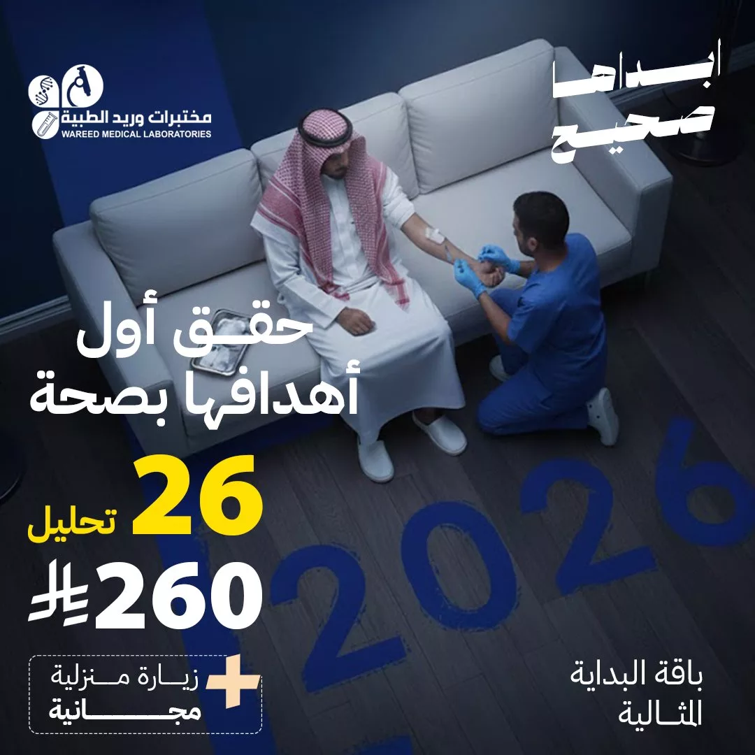 - تابع صحتك مع 26 تحليل اساسي فقط بـ 260 ريال مع زيارة منزلية مجانية
