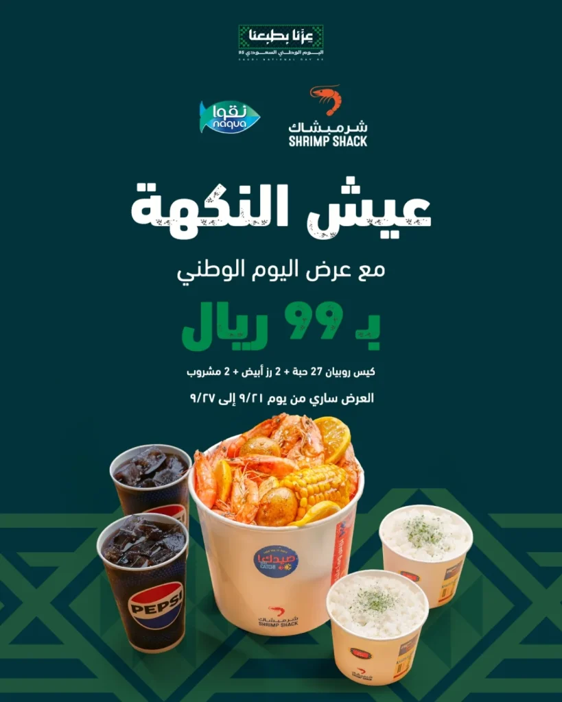 يقدم لكم مطعم شرمبشاك عرض مميز في اليوم الوطني السعودي 2025 عيش النكهة ب 99 ريال فقط