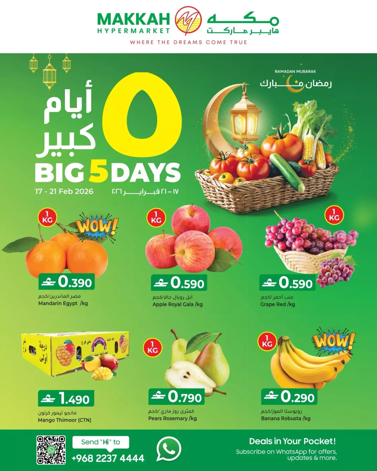 شاركها فيسبوك تويتر لينكدإن بينتيريست تيلقرام البريد الإلكتروني عروض مكة هايبر ماركت الطازج 17 حتى 21 فبراير 2026 قمة العروض الطازجة خصومات خاصة وفرو مع عروض رمضان على الخضار و الفواكه و مقاضي المنزل الاساسيه لا تفوتوا اقوى العروض المميز في جميع فروع مكة هايبر مكة