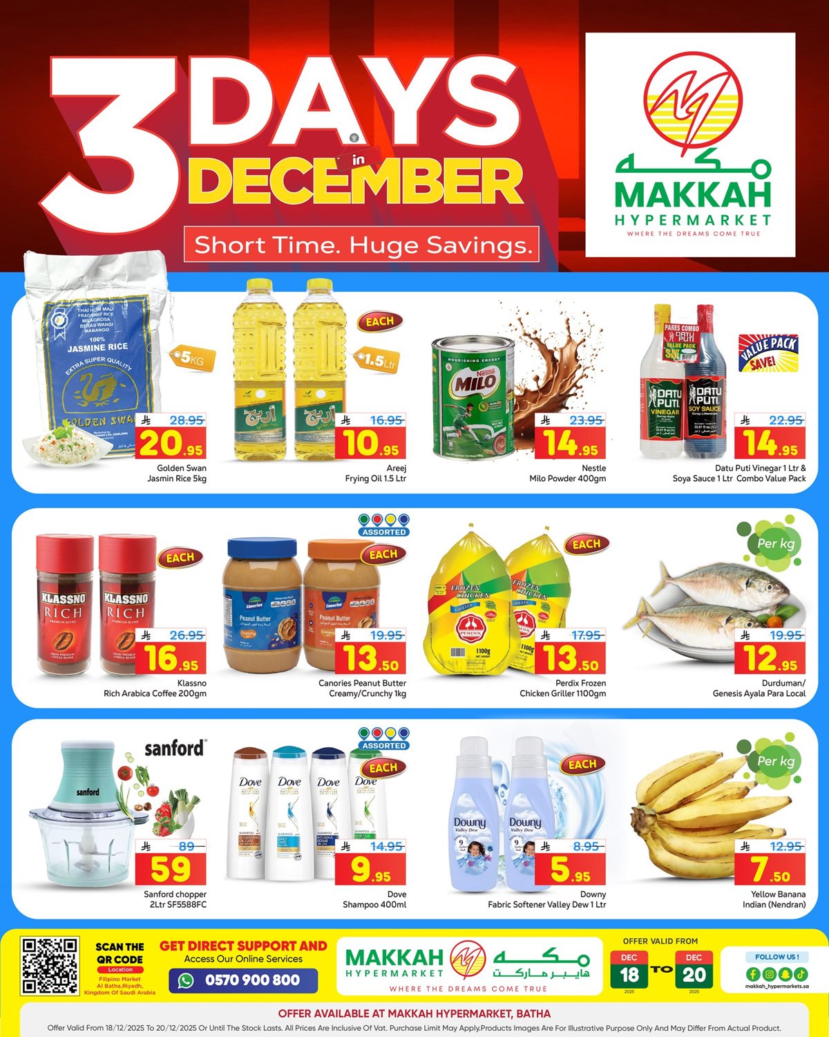 عروض مكة هايبر ماركت الويكند الخميس 18-12-2025 و تحتوي علي أنواعا متنوعة من اللحوم الحمراء والبيضاء وقطع الدجاج المختلفة إضافة إلى منتجات جاهزة مثل النقانق والبرجر والأجبان المجمدة و بتوفر كمان خضروات وفواكه موسمية وأسماك محلية وطازجة باسعار مناسبة للجميع فقط ابقوا معنا ليصلكم كل جديد