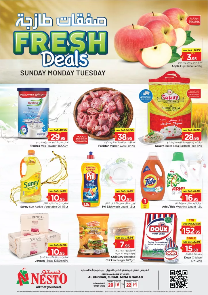 عروض نستو الدمام الاحد 20 اكتوبر 2024 تقدم مجموعة مميزة من الخصومات الكبيرة على مختلف المنتجات الطازجة والمتنوعة مثل الفواكه والخضروات بأسعار تنافسية تناسب الجميع هذه العروض تغطي كذلك مجموعة واسعة من اللحوم الطازجة مثل لحم الضأن الباكستاني واللحوم المحلية
