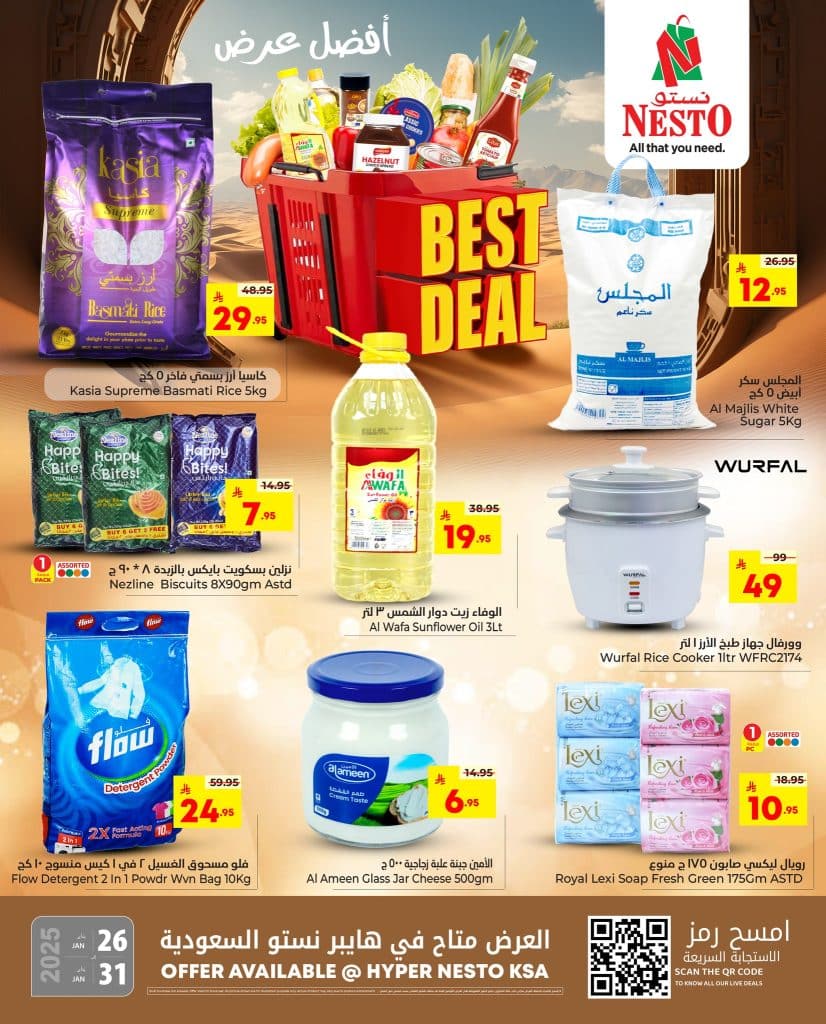 بنقدم ليكم احدث عروض نستو السعودية لجميع الفروع الاحد 25-1-2026 الموافق 6 شعبان 1447هـ و تشمل العديد من المنتجات الاستهلاكية من الارز و السكر و زيوت الطعام و بتوفر كمان المنظفات و مستلزمات المنزل من الادوات الضرورية و غيرها من المنتجات و باقل الاسعار التي تناسب الجميع ابقوا معنا ليصلكم كل جديد عن عروض السعودية