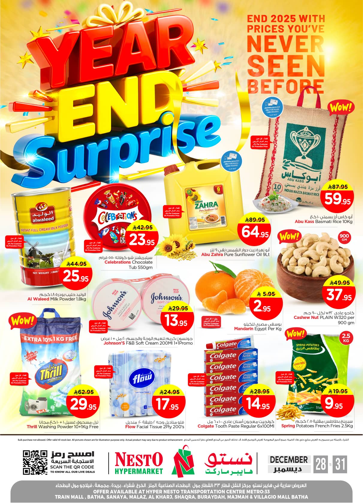 عروض نستو القصيم الاحد 8 رجب 1447هـ تحتوي علي حليب البودرة وزيت دوار الشمس وأرز بسمتي فاخر بالإضافة إلى شوكولاتة متنوعة ومكسرات الكاجو واليوسفي المصري ومعجون الأسنان والمناديل الورقية والبطاطس المجمدة و تشمل أصناف الأرز المختلفة وزيوت الطهي المتعددة وأنواع العسل الطبيعي ومنتجات الشوكولاتة
