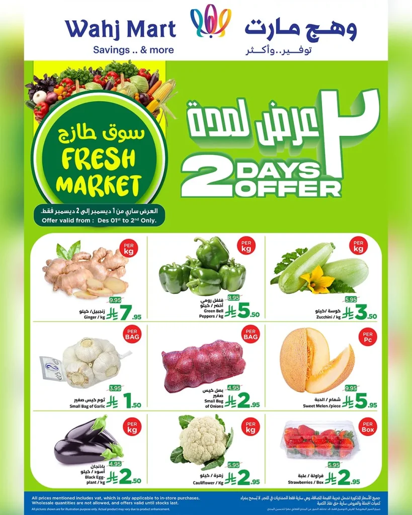عروض وهج مارت الطازج ليومين 1 و 2 ديسمبر 2025 فقط سلة مشترياتك أوفر وأكبر افضل العروض الطازجه بأسعار منافسة في جميع فروع وهج مارت في المملكة الان استفيدوا من تخفيضات منتصف الاسبوع المنافسة و استمتعوا بكل ما هو جديد لدينا.