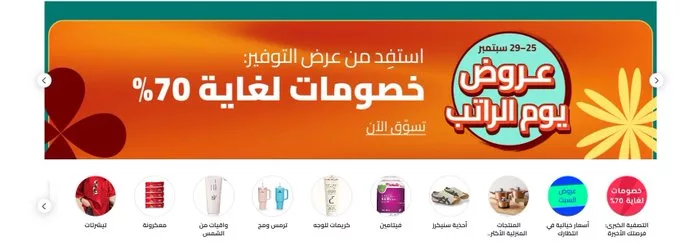 ومن بين العروض المتوفرة بمناسبة يوم الراتب عروض مهرجان الماركت خصومات تصل الى 40% بالاضافة الى خصم 50% على منتجات ماركة H&m