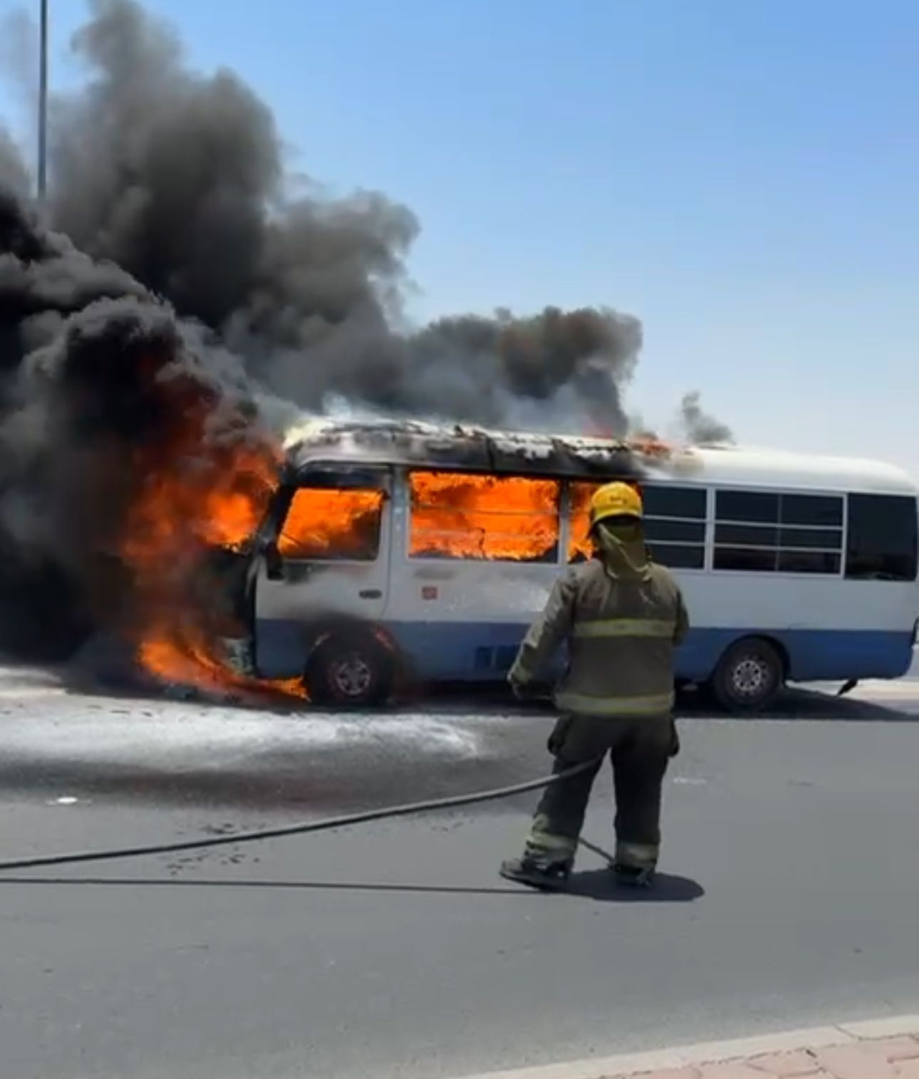 تعاملت فرق الإطفاء ظهر اليوم الخميس مع حريق باص على طريق الدائري السادس حيث تم مكافحة الحريق و إخماده ولم يسفر الحادث عن أي إصابات تذكر .