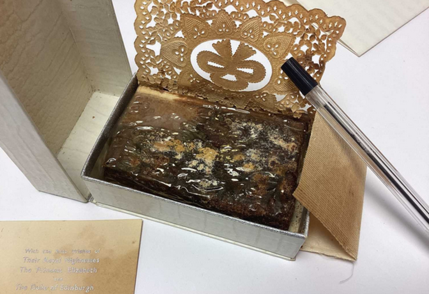 حُفظت الكعكة في صندوق تقديمها الأصلي، مُرفقةً برسالة من الملكة، مؤرَّخة بنوفمبر (تشرين الثاني) 1947، تقول: «زوجي وأنا تأثّرنا بشدّة لعلمنا بتقديم هدية زفاف مُبهجة كهذه. فتقديم الحلوى اللطيفة أسرتنا نحن الاثنين».