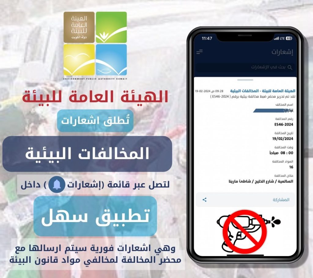 أطلقت الهيئة العامة للبيئة إشعارات المخالفات البيئية لتصل عبر قائمة (إشعارات) داخل تطبيق سهل.