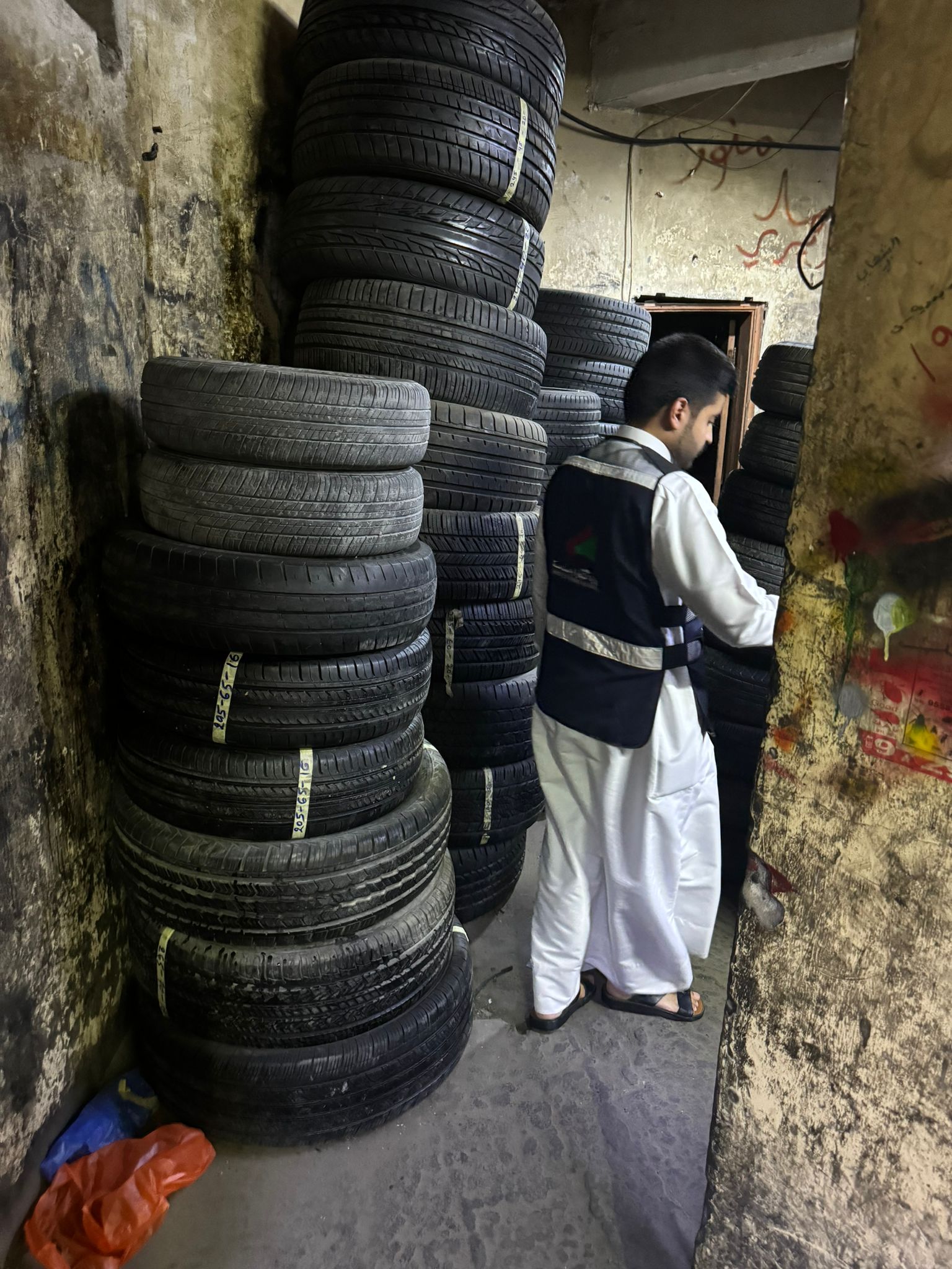استكمالاً للدور الرقابي الذي تقوم به وزارة التجارة والصناعة قام فريق طوارئ الجهراء والفروانية بضبط مخزن في منطقة جليب الشيوخ يحتوي على 500 إطار سيارات مستعملة يقوم المخالف ببيعها وتوزيعها على محال تبديل الإطارات على انها جديدة، وتم حصر المضبوطات وتحرير محضر ضبط واحالته للنيابة.